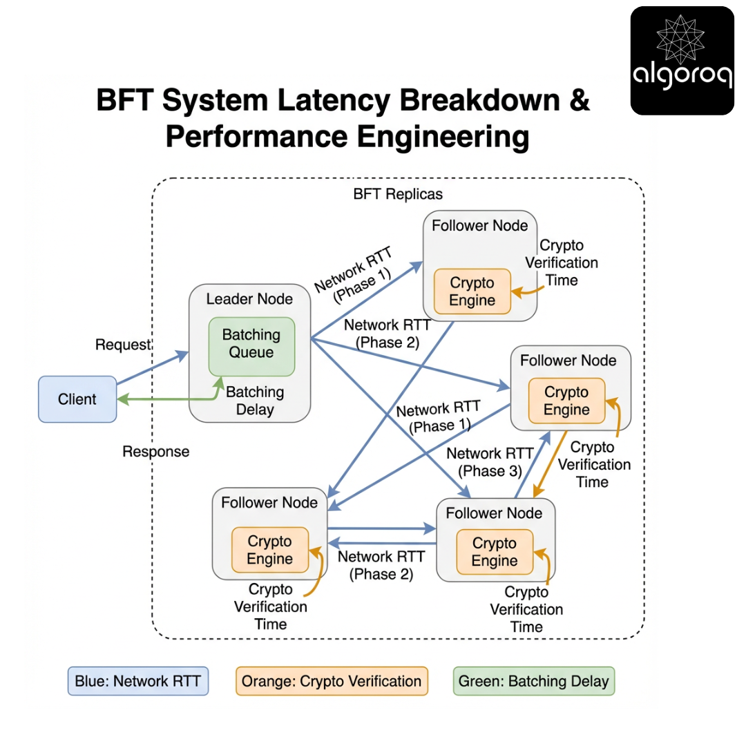 BFT performance is dominated by "phases x RTT" and "signatures x n." Most optimizations target one of those multipliers.